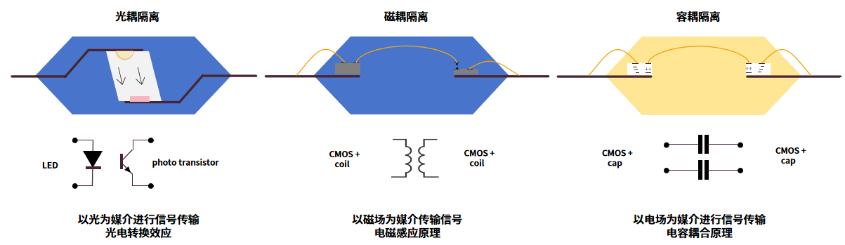· 容耦隔离是一种基于电容耦合原理来实现信号传输与电气隔离的技术。容耦隔离器主要通过电容两块极板之间电场变化来传输信号,虽无法传输直流或低频信号,但具备着抗干扰能力较强、传输速率相对磁耦较高、集成度较高、功耗相对磁耦较低、体积较小与成本较低等优势,可覆盖绝大多数电气隔离场景。