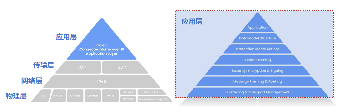 从协议栈上看,在应用层,Matter协议通过统一的设备模型定义功能,可让LED灯具、智能门锁与温控器等家居设备无需依赖特定云端即可在本地局域网上完成组网,还能令这些家居设备在互联网断网时仍能保持互联互通与稳定工作。